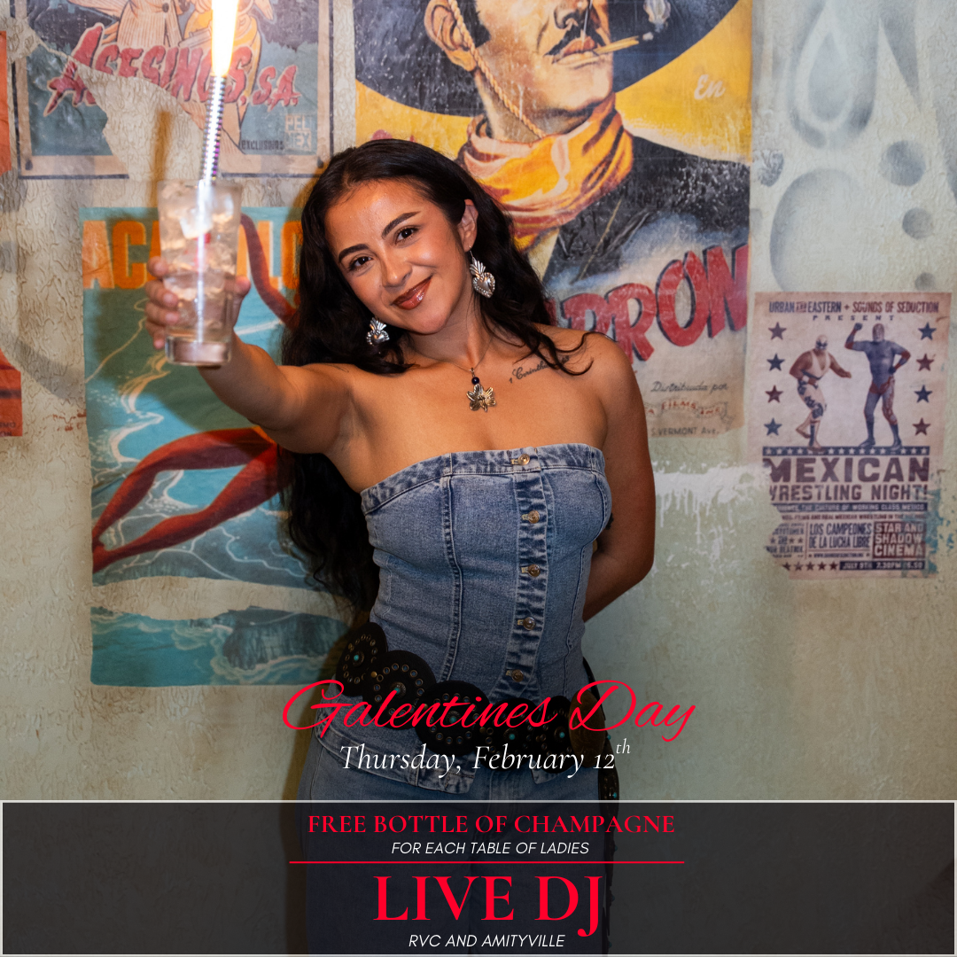 Celebrate Galentine’s Day at Mesita on Thursday, February 12! Enjoy a complimentary champagne bottle for every table of ladies, plus live DJs at our RVC and Amityville locations. Grab your girls and celebrate in style. 🥂💖