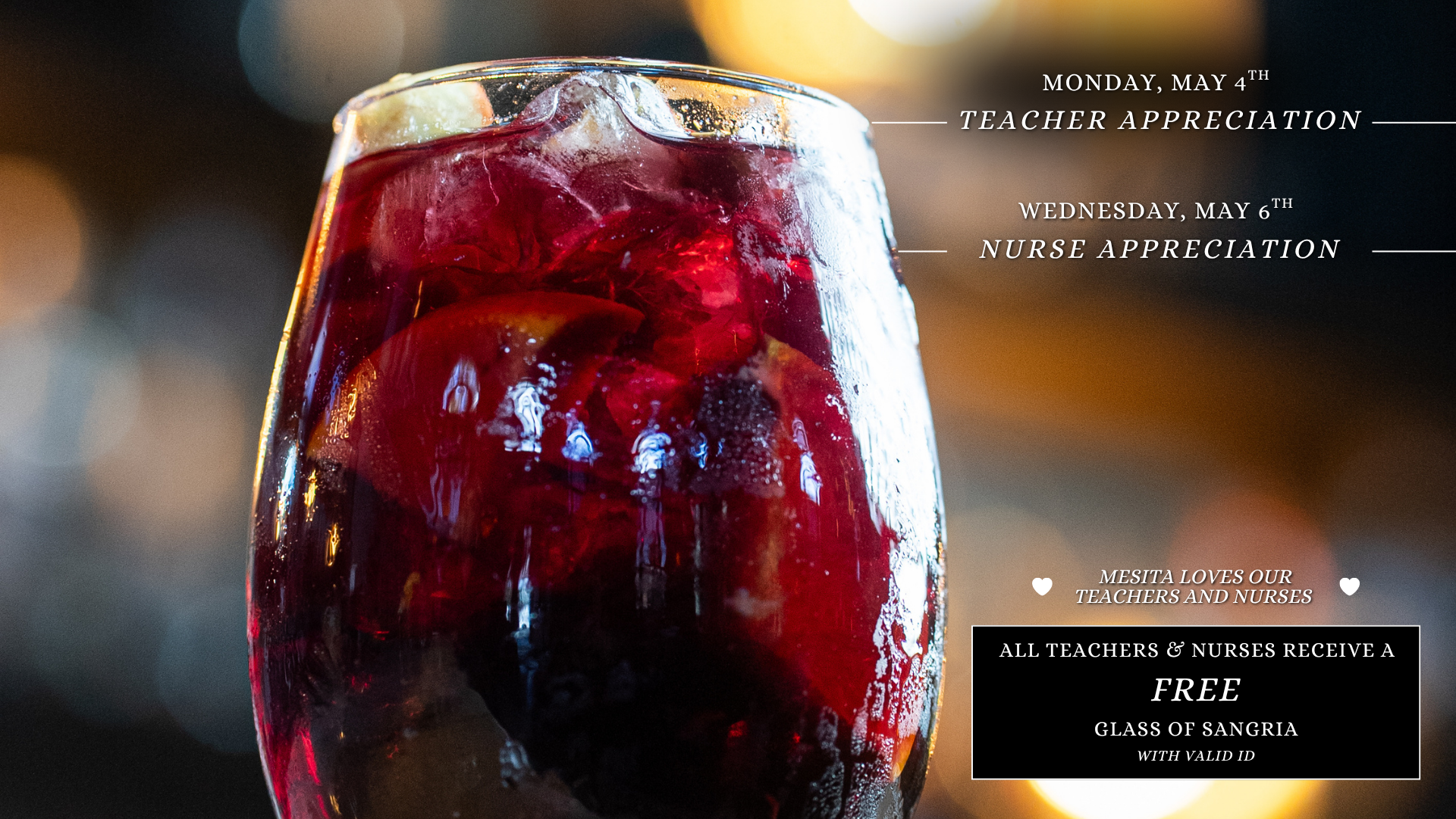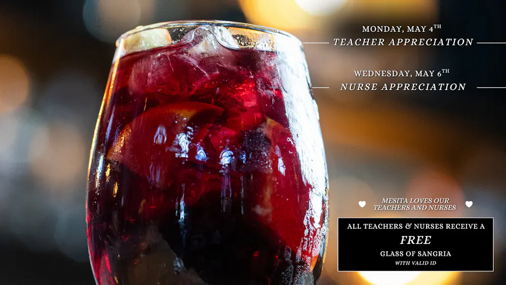 All teachers receive a complimentary glass of sangria 🍷