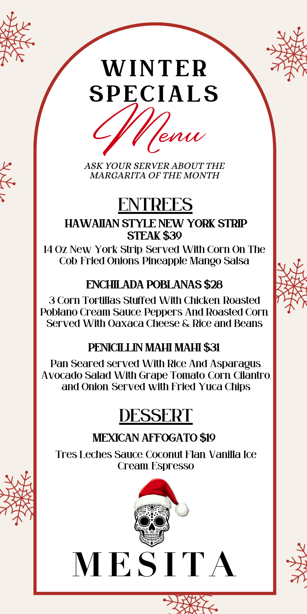 Shredded Chicken, Corn Tortillas, Melted Cheeses, Crema Fresca, Rice & Beans Choose: Mole Poblano or Ancho Chile Sauce
