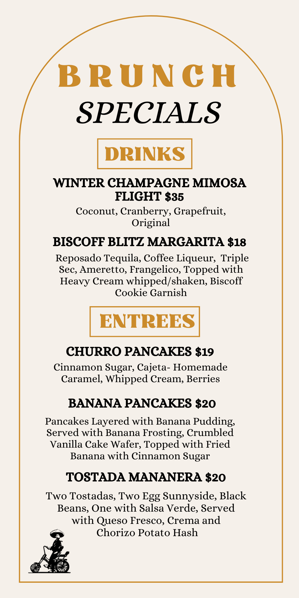 Choose Nachos or Street Corn (Off Cob), Cheese Quesadilla, Choose two protein fajitas (Chicken, Steak, Barbacoa, Pork, Shrimp or Veggie (Comes with side of rice, guac, and beans) & Churros