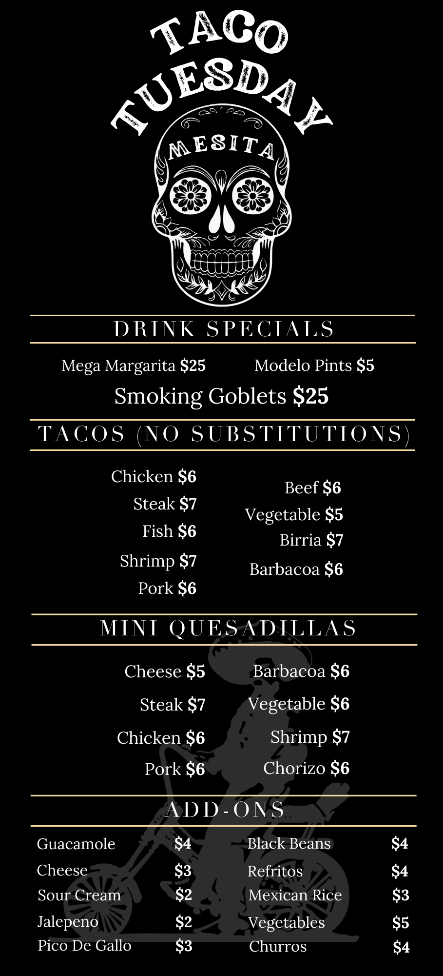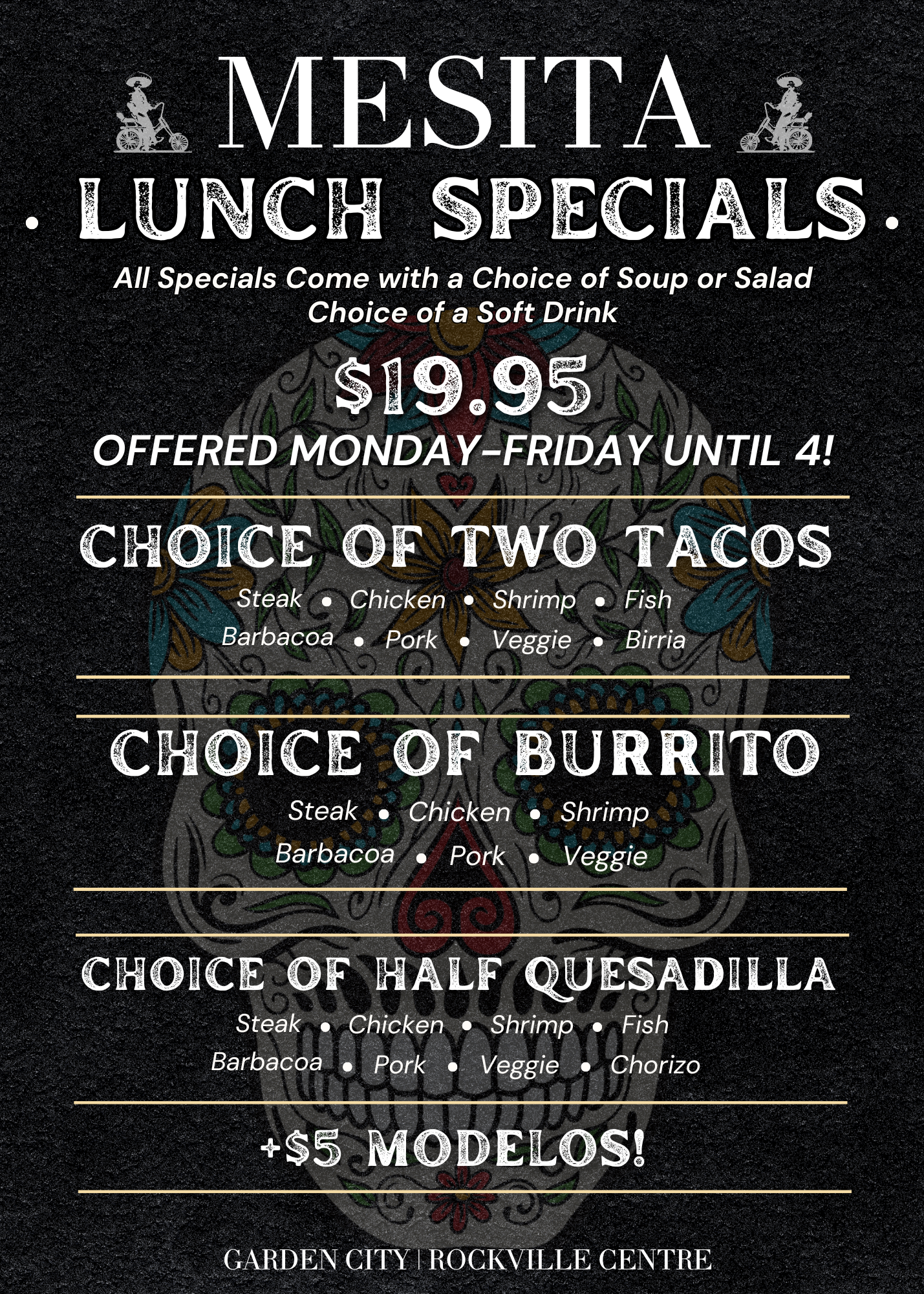 Served with Mexican Rice, Black Beans, Pico De Gallo, Sour Cream, Shredded Cheese, Guacamole, Flour Tortillas-